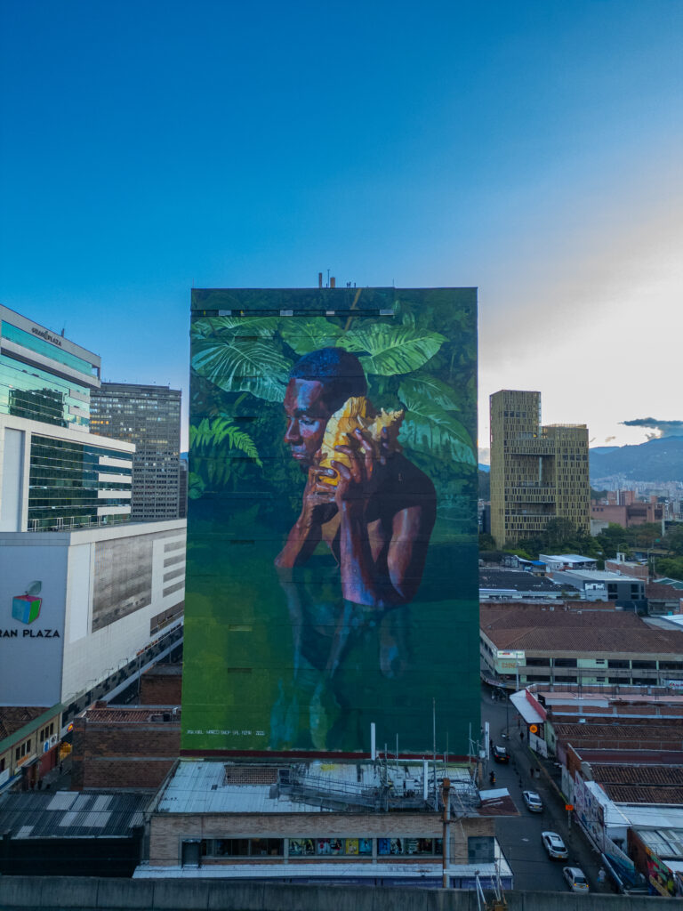 Eski, nos comentó que el racismo también es una manera de relación con la otredad en términos simbólicos. Es por eso que mostrar la presencia de la comunidad afrocolombiana a gran escala en el espacio público, da un mensaje potente: Medellín, también es negro.